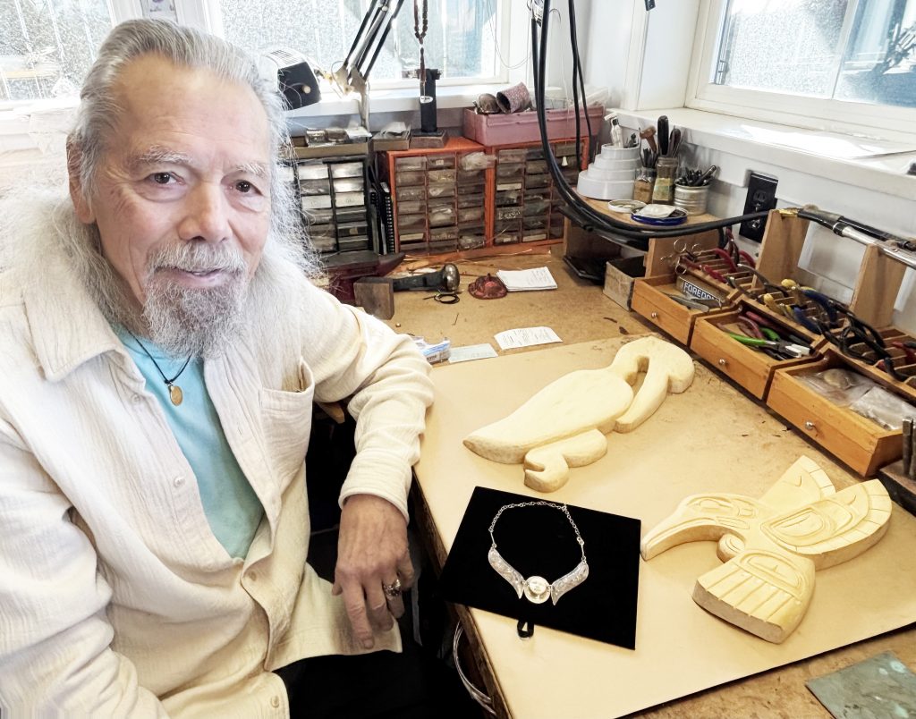Richard de la Mare with one of his silver jewelry pieces